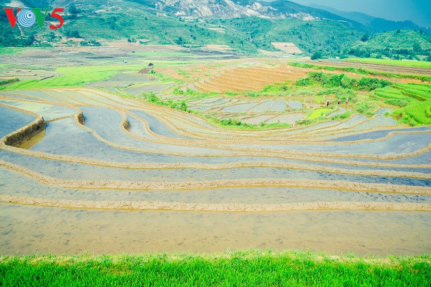 | El panorama de la aldea de Lim Mong en la temporada de siembra de arroz |