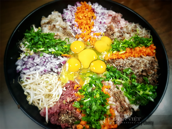 Sus ingredientes son carne de cerdo molida, zanahorias, brotes de soja, champiñones, huevos de gallina… y condimentos. Foto: danviet.vn |
