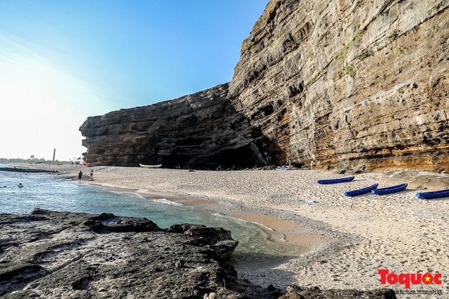 La cueva Cau está ubicada al pie de la montaña Thoi Loi en el pueblo de Dong, comuna de An Hai, distrito de la isla de Ly Son. Está rodeada de un majestuoso escenario natural, con el mar por un lado y las montañas por el otro. (Foto: toquoc.vn) |