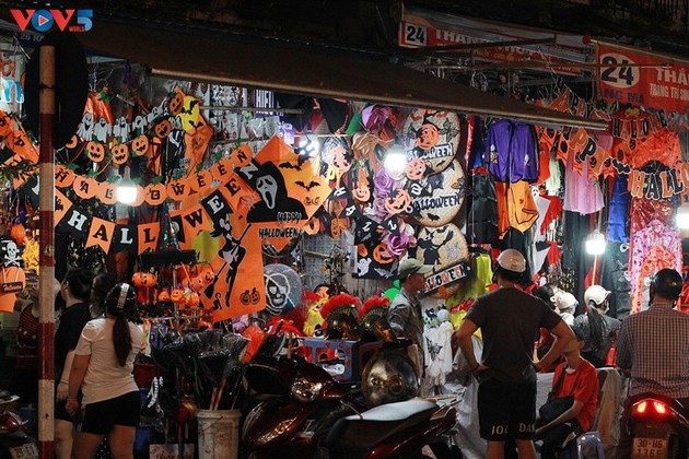 Los artículos más populares son las cestas de dulces con forma de calabaza y los faroles de calabaza decorados, que cuestan entre 70.000 y 150.000 dongs cada uno, mientras que las máscaras simples cuestan entre 30.000 y 60.000 dongs por pieza, y las máscaras de fantasmas cuestan entre 120.000 y 350.000 dongs por pieza, dependiendo del tamaño. |