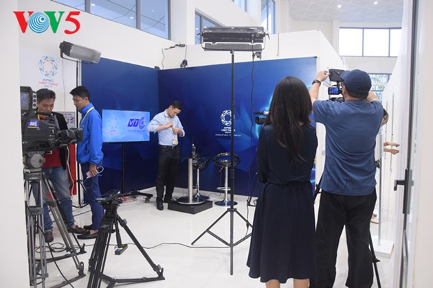 | Se pueden seguir los eventos de la Semana de Alto Nivel del APEC, celebrados en diferentes lugares de Da Nang, a través de las pantallas digitales instaladas en este centro. |