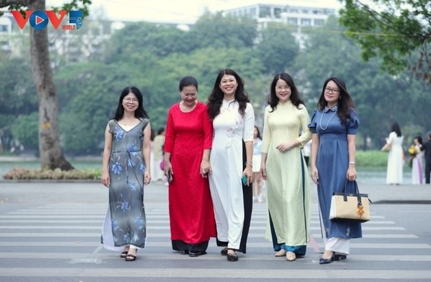 Ao dai, la túnica tradicional tradicional, simboliza la belleza y elegancia de las mujeres vietnamitas. |