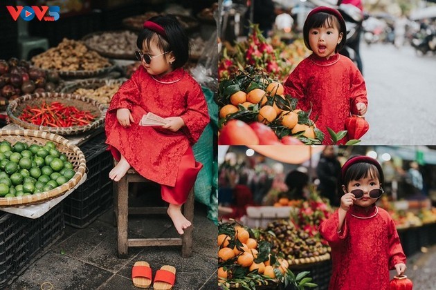 Durante esta época festiva los padres visten a sus hijos con atuendos Ao Dai adornados con accesorios bien elaborados. |
