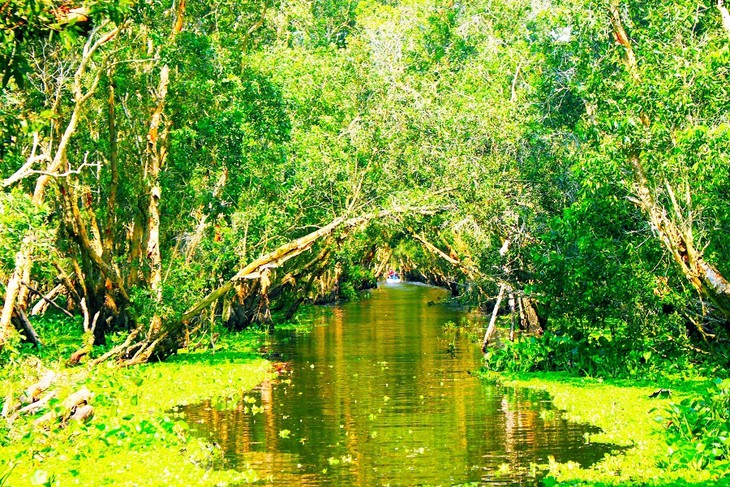 Los cajeput inferiores se entrelazan para crear un enorme techo inclinado. La inmersión en la naturaleza adquiere aquí todo su significado. (Foto: Portal de la provincia An Giang) |