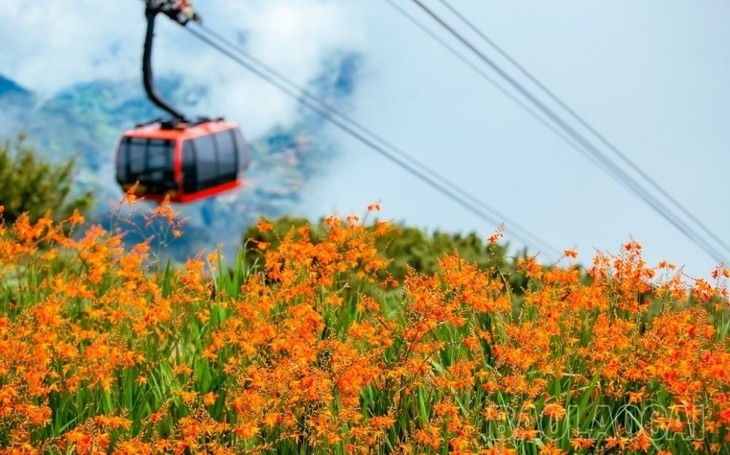 Crocosmias de naranja en la estación Fansipan. Foto: Diario de Lao Cai.