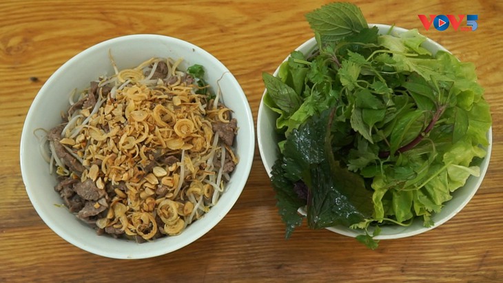 El Bun bo Nam Bo se toma con verduras frescas. |