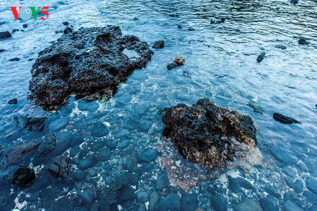 | El cráter volcánico aparece gradualmente cuando el mar se retira. |