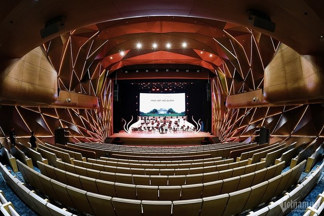 Los elementos clásicos de esta obra recuerdan los primeros teatros de la humanidad. Cada detalle de diseño del sistema de techo y el interior refleja la historia vietnamita, utilizando motivos tradicionales de la cultura vietnamita, como el sol, las grullas, los tambores de bronce Dong Son e instrumentos musicales étnicos. |