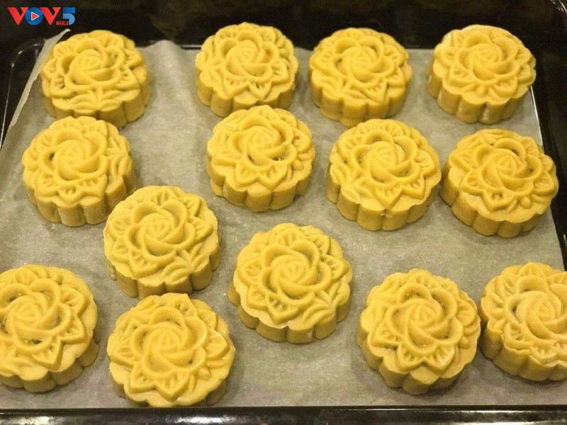 Tanto para satisfacer su pasión por la repostería como para hacer que los niños se entusiasmen más con el Festival del Medio Otoño, Nguyen Thu Ha (en el distrito de Nam Tu Liem, Hanoi) compró por Internet los ingredientes y preparó pasteles muy sabrosos. (Foto: Thu Ha/VOV) |