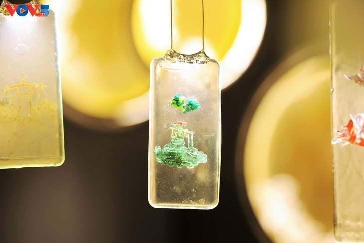 ![]() La obra toma la forma de una lámpara redonda compuesta de mosaicos que representan los oficios tradicionales de Thang Long. |