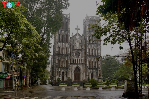 El área de la Catedral de San José es un lugar obligado para los turistas al visitar Hanói. Las cafeterías callejeras, generalmente llenas, están todas cerradas. |