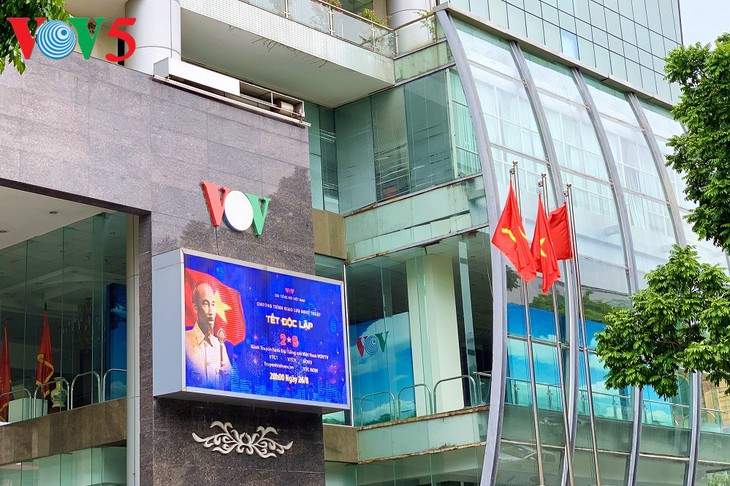 La Voz de Vietnam ha instalado una pantalla LED que proyecta documentales sobre el gran acontecimiento histórico con ocasión del 75 aniversario del Día de la Independencia de la patria. |