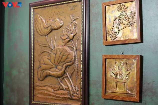 Cada sala de fotografía tiene su propio estilo y tono de color. Todas las habitaciones llevan el nombre de calles del casco antiguo de Hanói. En la sala llamada calle Hang Dao, hay una antigua sala de canto A Dao, con una estera, un juego de té y una cítara llamada en vietnamita đàn tranh. |
