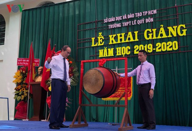 En Hai Phong, el jefe del Departamento de Propaganda y Educación del Comité Central del Partido, Vo Van Thuong, asiste a la inauguración del nuevo año escolar en el colegio Chu Van An. |
