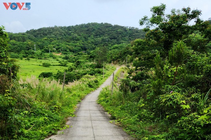 Thanh Lan está envuelta por bosques que ocupan hasta el 70 % de su superficie. Al viajar en un carrito eléctrico, los visitantes pueden disfrutar del paisaje verde a ambos lados de la carretera. |