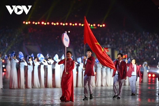 ![]() El nadador Nguyen Huy Hoang encabeza la delegación del país anfitrión en el desfile. (Foto: Vu Toan/VOV) Debido a la epidemia de covid-19, cada una de las 11 delegaciones deportivas participantes sólo envió a 31 representantes a tomar parte en el desfile de la ceremonia de inauguración de SEA Games 31. |