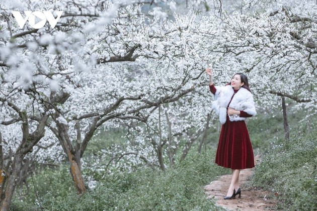 En febrero, muchas personas vienen a Moc Chau con sus familias o amigos. |