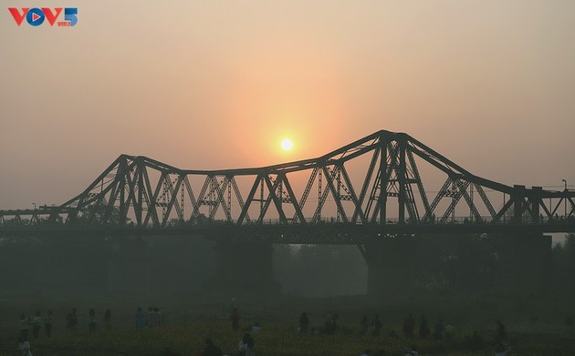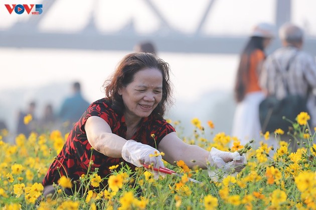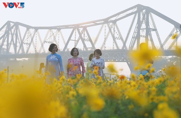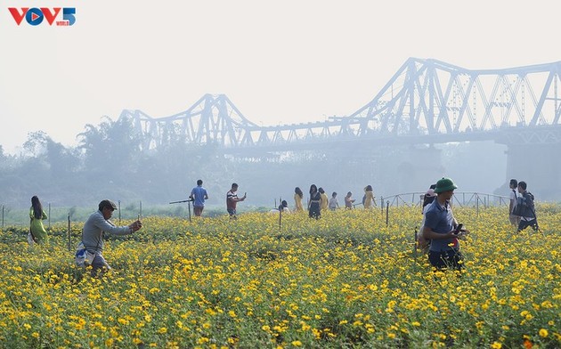 El área debajo del histórico puente Long Bien es ahora un jardín lleno de flores florecientes, que atrae a cientos de visitantes todos los días. |