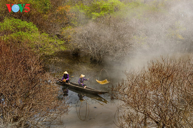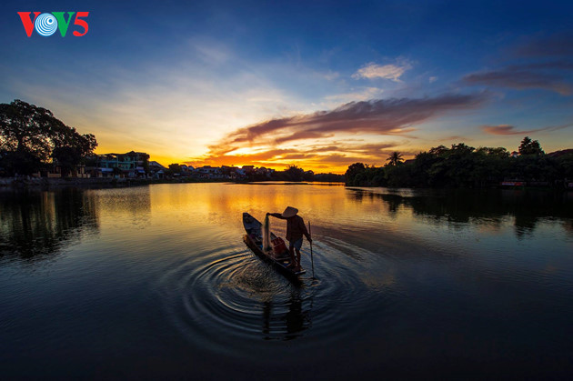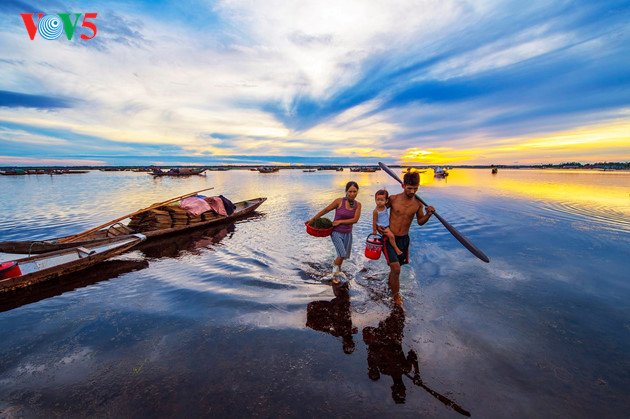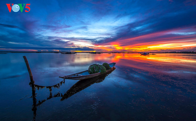 | El sol está subiendo en la ciénaga de Tam Giang. |