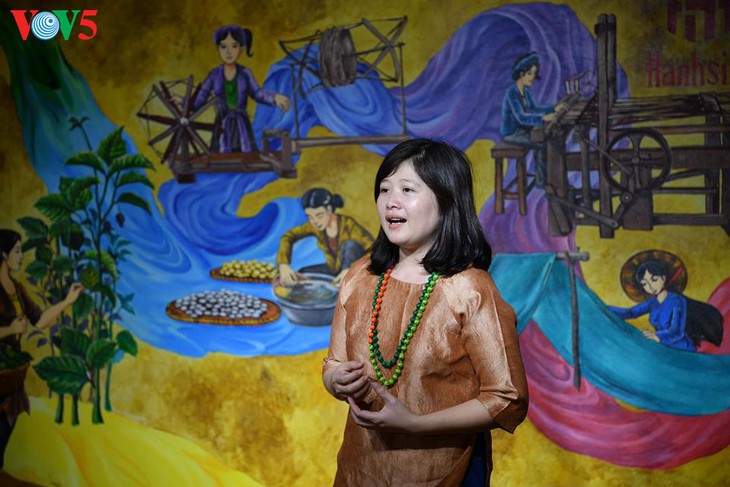 La directora de la entidad, Luong Thanh Hang, explica a los menores el proceso de producción de la seda. |