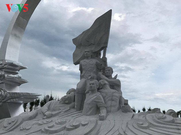| Su monumento, está compuesto por losas de granito que pesan más de 14 toneladas. Tiene una altura de 15,15 metros, con una base de 1,4 metros, que representa las figuras de 9 soldados de Gac Ma determinados a proteger a muerte la integridad territorial. |