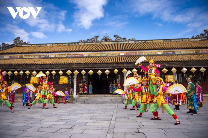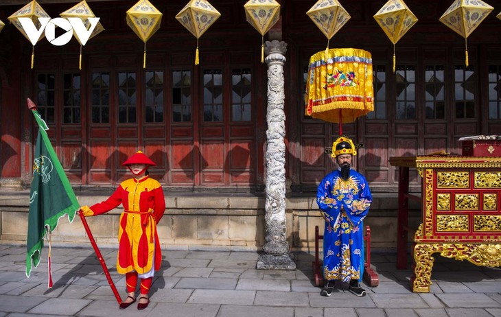 La fiesta del Año Nuevo Lunar bajo la dinastía Nguyen es reproducida en forma teatral en el Centro de Conservación de Reliquias de Hue. |