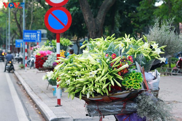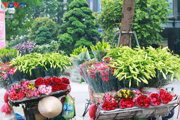 Los vendedores ambulantes venden un ramillete de diez flores a 35.000 dong (cerca de 2 dólares). |