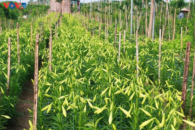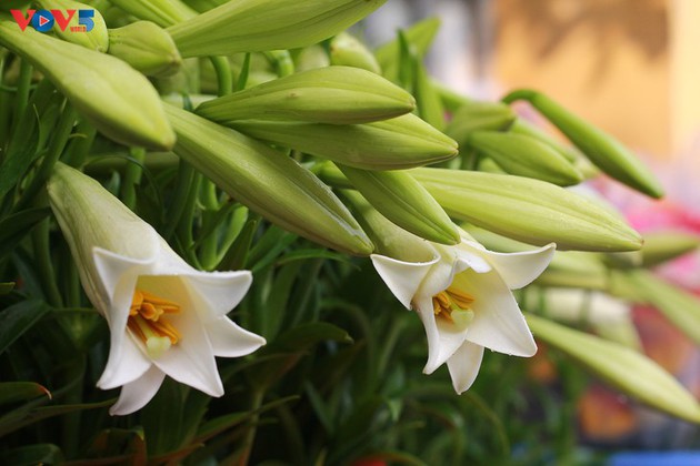 Los lirios imperan en una tienda ubicada en el mercado de flores de Quang Ba. |