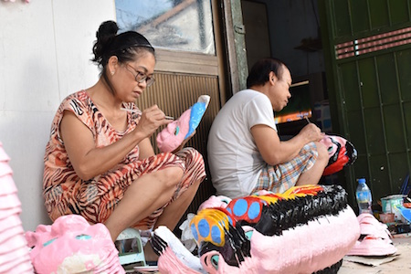 En una habitación de 15 metros cuadrados en la calle de Hang Than, distrito de Ba Dinh, Hanói, el matrimonio trabaja sin descansar para elaborar máscaras de cartulinas al servicio de los niños en ocasión de la Fiesta del Medio Otoño.