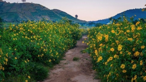 (VOVWORLD) - A finales de otoño, cuando la primera ola de frío invade Tay Nguyen (Tierras Altas Centrales), los girasoles mexicanos (Hoa Da Quy en vietnamita) florecen alrededor y sobre el volcán Chu Dang Ya. Este magnífico paisaje atrae a muchos entusiastas de la fotografía de todo el país.