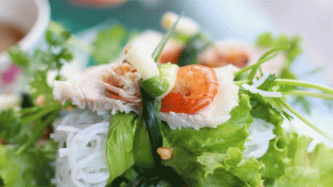 Manjares del Tet - rollo de lechuga fermentada con carne de res y camarón