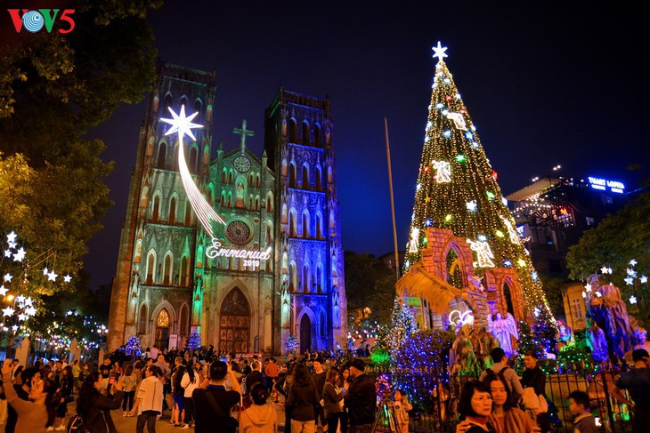 La festividad en Vietnam se celebra en la noche del 24 y se extiende hasta el 25 de diciembre. Las canciones navideñas resuenan en los sitios públicos, engalanados con árboles de Navidad, figuras de Santa Clause, copos de nieve y luces brillantes. En los grandes hoteles, centros comerciales y calles occidentales de las importantes ciudades, lugares donde se reúnen extranjeros, el ambiente de la Navidad está animado con atractivos programas de entretenimiento. Además de las canciones clásicas extranjeras consideradas como himnos navideños, las obras compuestas por músicos vietnamitas también resuenan en todas las partes durante este acontecimiento tan esperado no sólo por los niños.