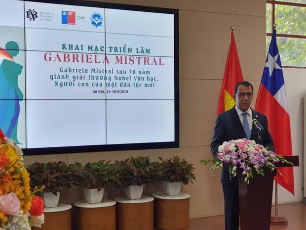 Al intervenir en la exhibición, el embajador chileno en Vietnam, Jaime Chomali, resaltó los aportes de Gabriela Mistral, junto a Pablo Neruda, Vicente Huidobro y Pablo de Rockha, entre otros, a la literatura y la poesía de su país.