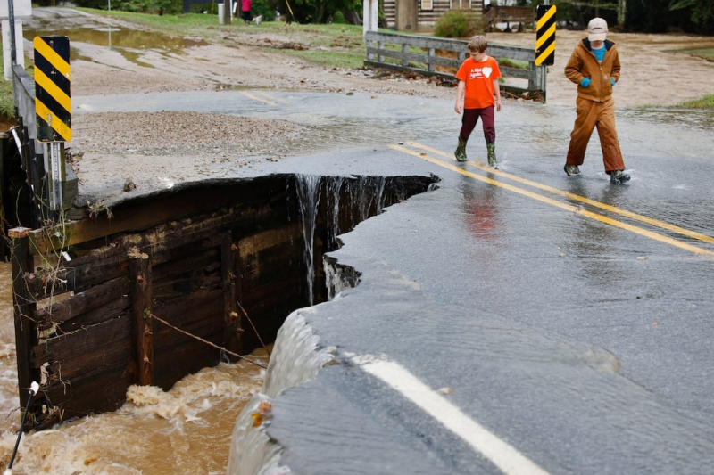 Según el Departamento de Transporte de Estados Unidos, cuatro carreteras interestatales importantes en Carolina del Norte, Tennessee y muchos puentes están completamente bloqueados. Decenas de carreteras en Georgia y Carolina del Sur fueron cerradas. Actualmente, algunas áreas del oeste de Carolina del Norte aún mantienen advertencias de inundaciones repentinas debido al riesgo de ruptura de la presa.