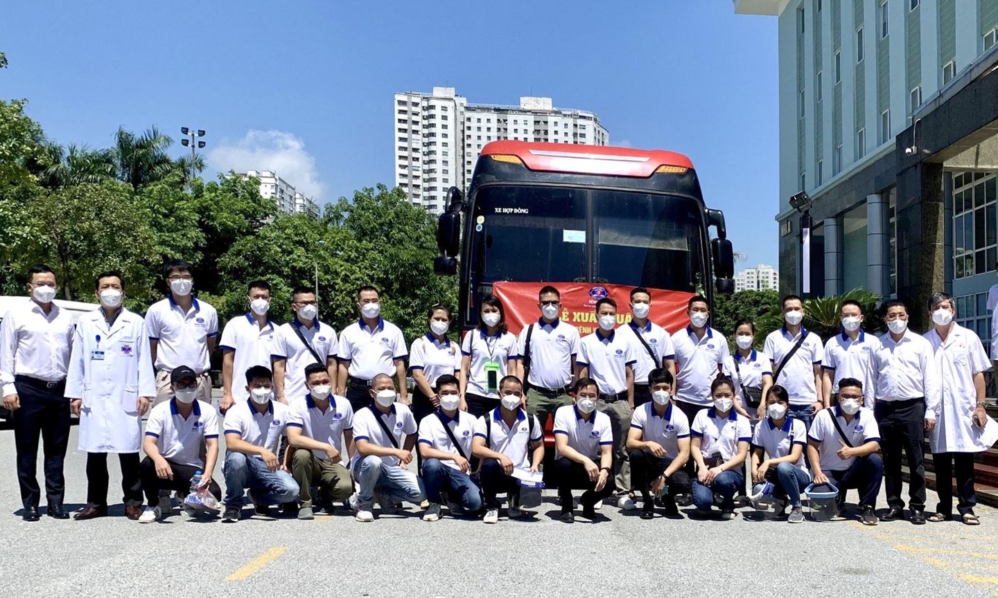 Médicos del Hospital Nacional del Cáncer (Hospital K) de Hanói enviados a la provincia sureña de Dong Nai para ayudar el combate anticovid-19 allí. (Foto: Hospital K) |