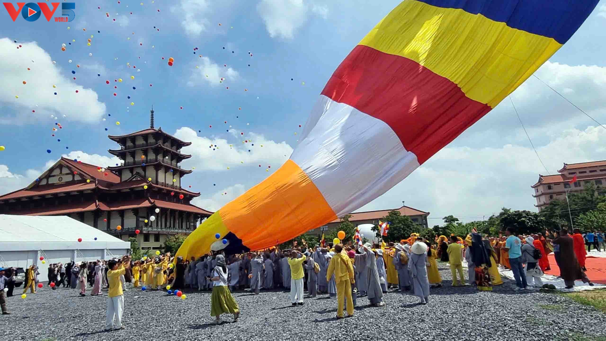 La Gran Bandera Budista, de 500 metros cuadrados, ondea sobre el cielo de Ciudad Ho Chi Minh, marcando oficialmente el inicio del Festival de Vesak 2025. |