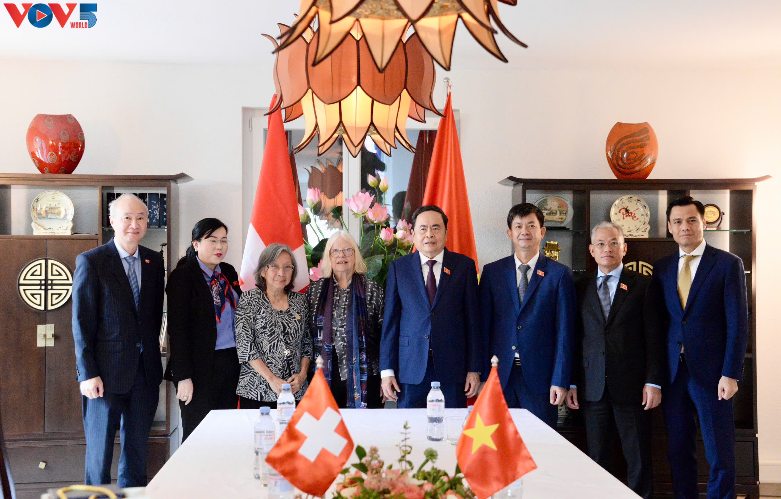 El presidente de la Asamblea Nacional, Tran Thanh Man (cuarto desde la derecha), junto a miembros de la Asociación de Amistad Suiza-Vietnam. (Foto: VOV) |