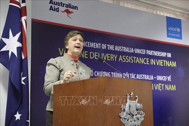 En la ceremonia, la embajadora de Australia en Vietnam, Robyn Mudie, dijo que Australia y Unicef ayudarán a Vietnam a comprar equipos de refrigeración para almacenar y transportar vacunas a los lugares que las necesitan en todo el país; organizar cursos de capacitación y suministrar materiales para garantizar que el personal de salud estén disponibles, además de respaldar los planes de inmunización en las provincias remotas, asegurando así una distribución equitativa y sincronizada de vacunas.