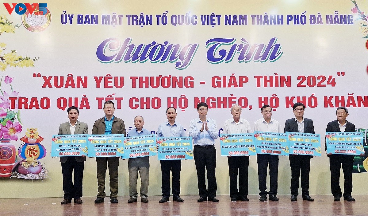 Antes de Tet del Dragón 2024, el Comité del Frente de la Patria de Vietnam en Da Nang entregó donaciones a 18 800 hogares necesitados, las víctimas de la dioxina, las personas con discapacidades y los veteranos voluntarios.