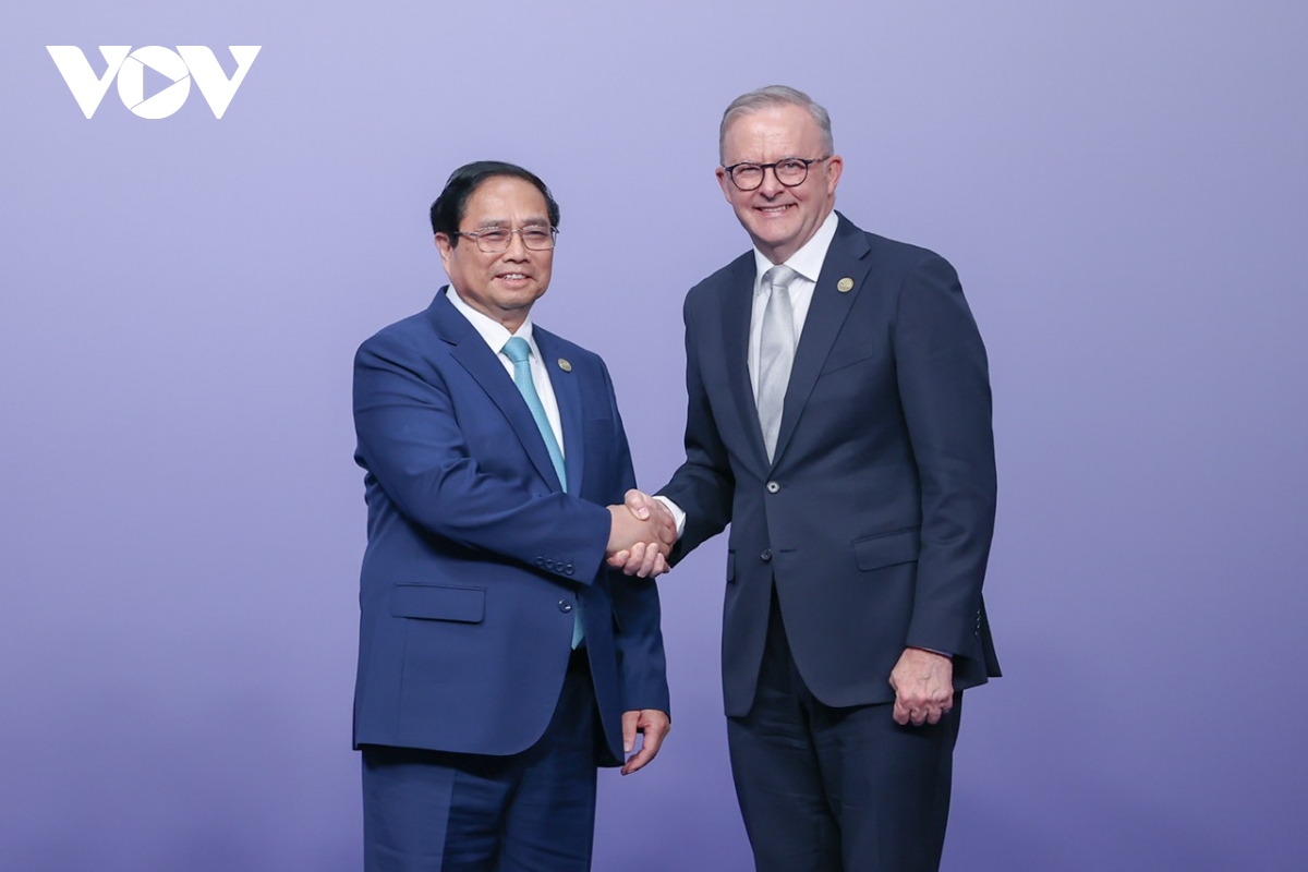 El primer ministro Pham Minh Chinh (i) y su homólogo australiano Anthony Albanese. |