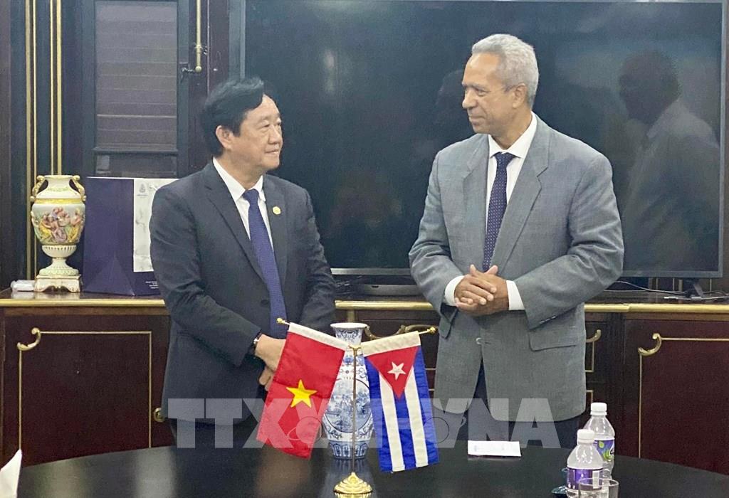 El vicesecretario permanente del Comité Provincial del Partido de Binh Duong, Nguyen Hoang Thao (i), y el presidente de la Cámara de Comercio de Cuba, Antonio Luis Carricarte Corona. (Foto: VNA) |
