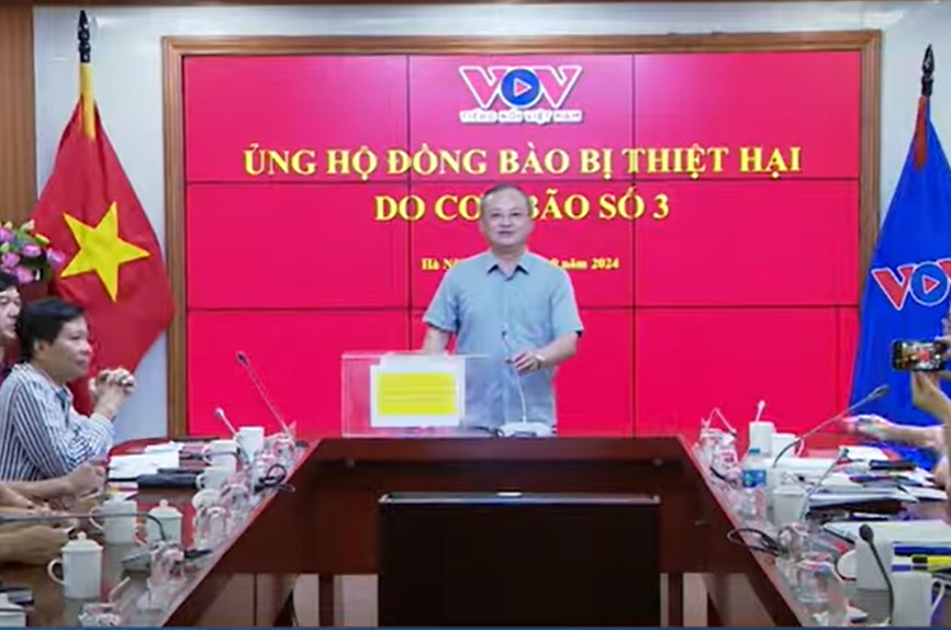 El presidente de la Voz de Vietnam, Do Tien Sy, en el acto de lanzamiento de la una campaña para apoyar a las personas afectadas por el tifón Yagi. |