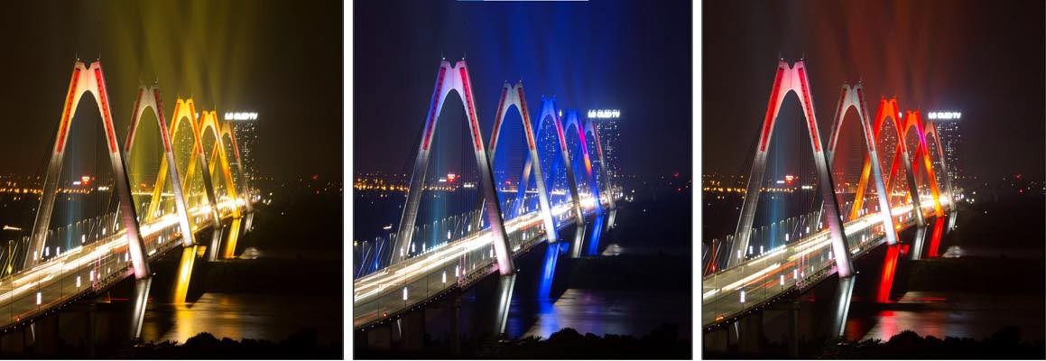 La iluminación del puente de Nhat Tan en Hanói en conmemoración del Día de la Independencia de Colombia en Vietnam. (Foto: Embajada de Colombia en Vietnam) |