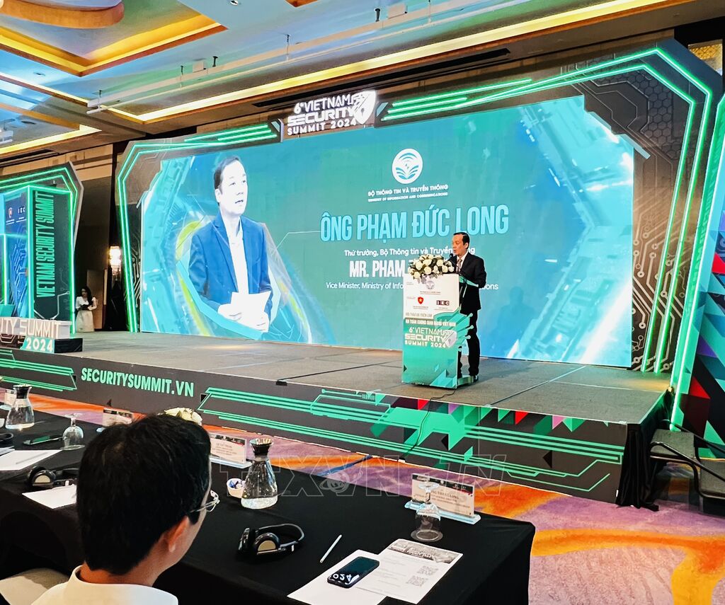 El viceministro del Ministerio de Información y Comunicación, Pham Duc Long, interviene en el evento. (Foto: VNA) |