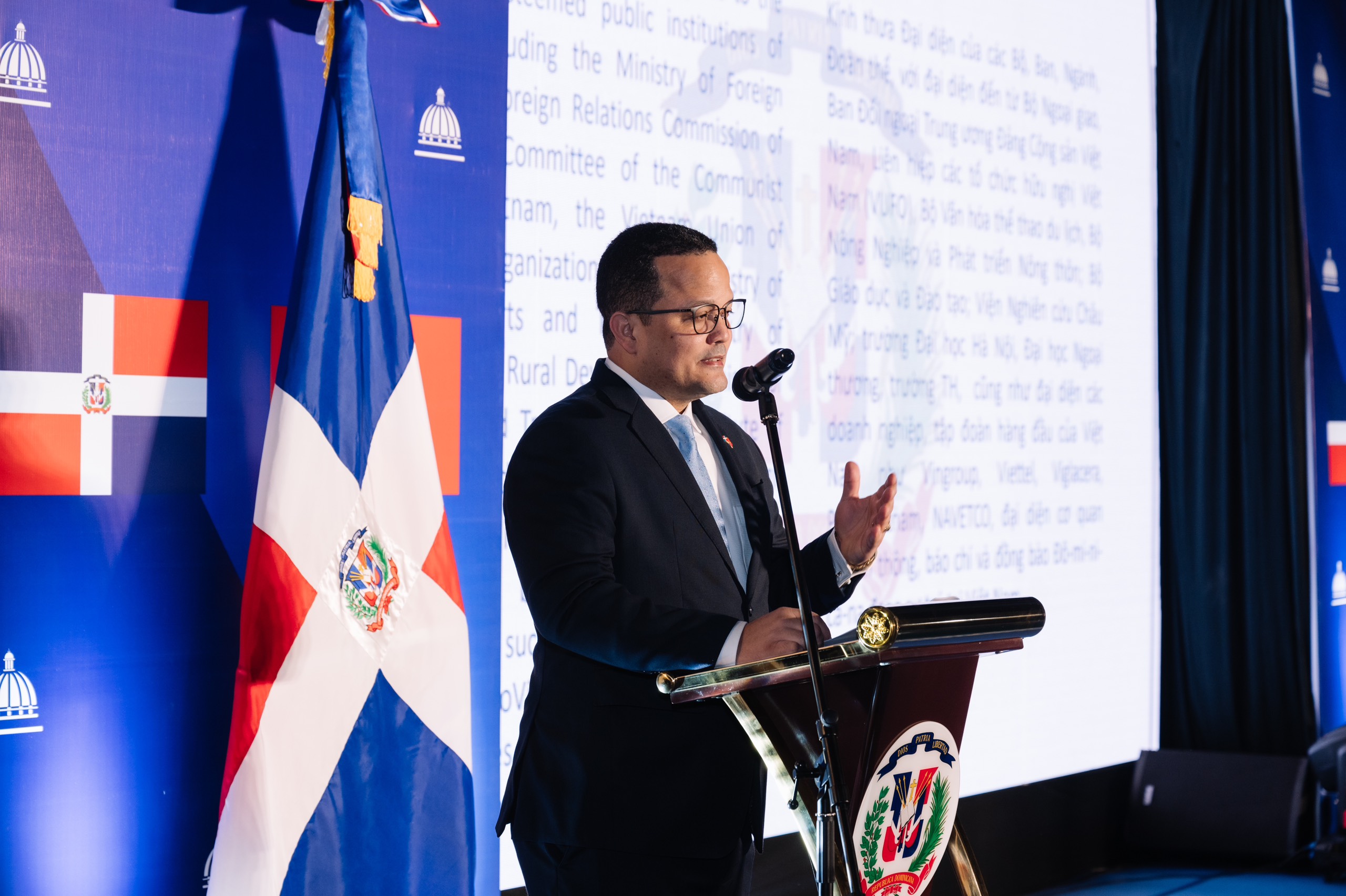 El embajador de República Dominicana en Vietnam, Jaime Francisco Rodríguez,pronuncia su discurso en la ceremonia. (Foto: Embajada de República Dominicana en Vietnam) |