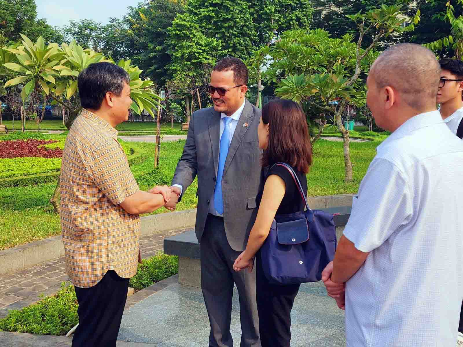 El embajador de la República Dominicana en Vietnam, Jaime Francisco Rodríguez (segundo desde la izquierda), da la bienvenida a invitados a la ceremonia. (Foto: Embajada de la República Dominicana en Vietnam) |