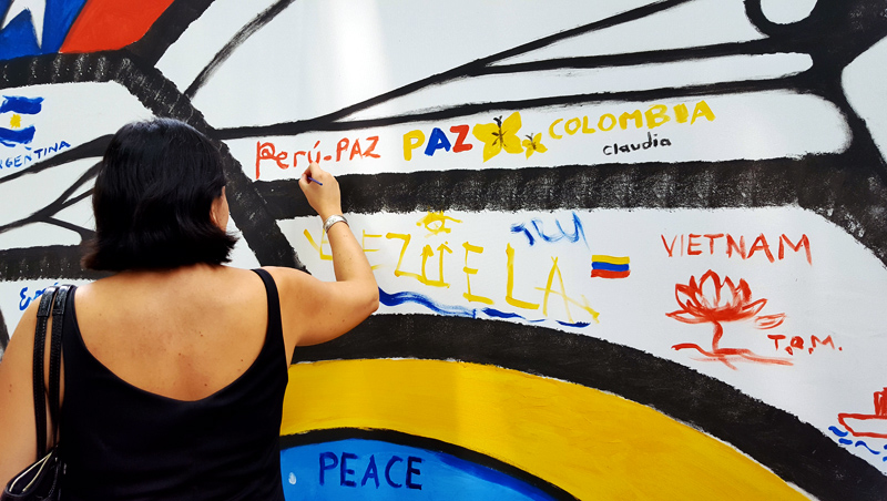 Entretanto, el autor de la pintura, Mono González dijo lo siguiente: “Yo tengo una ligación con Vietnam, muy importante que tiene que ver desde nuestros inicios de solidaridad en la época dura, precisamente con su la liberación en contra de la ocupación norteamericana. Esta pintura se trata de un recuerdo de la historia común de los dos pueblos en la lucha por su liberación y sus identidades”.