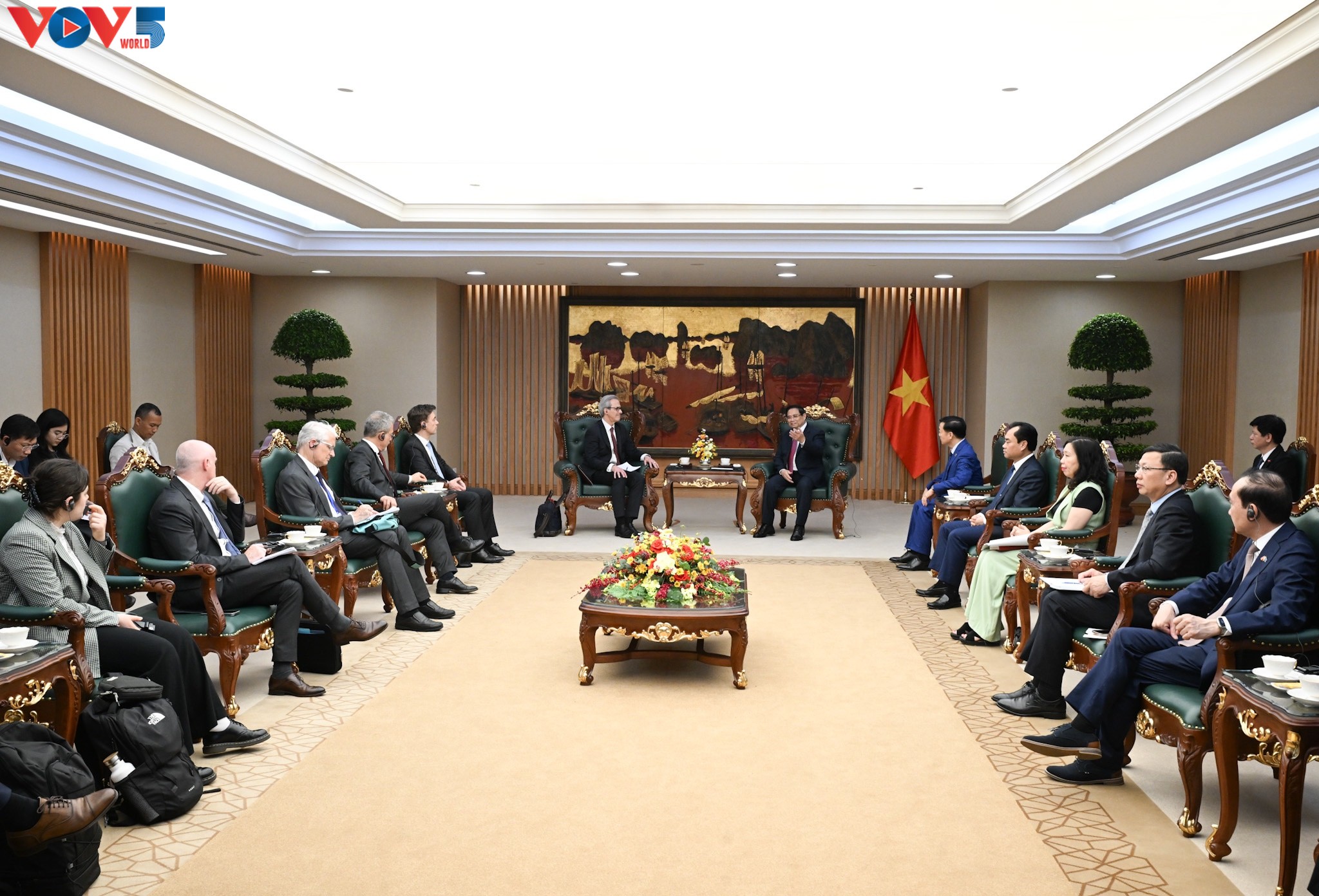El primer ministro de Vietnam, Pham Minh Chinh, recibe a Fernando Andresen Guimaraes, jefe de la Dirección de Gobernanza Oceánica Internacional y Pesca Sostenible de la Comisión Europea. (Foto: Lai Hoa/VOV) |