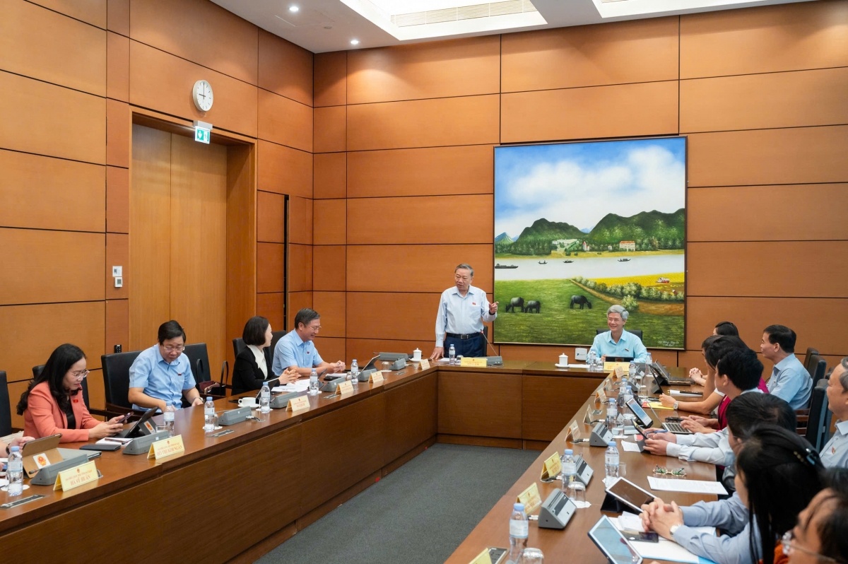 El secretario general del Partido Comunista de Vietnam, To Lam, habla en la reunión. |