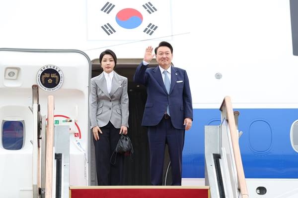 El presidente surcoreano, Yoon Suk Yeol, y su esposa comienzan su visita oficial a la República Checa. (Foto: Yonhap) |